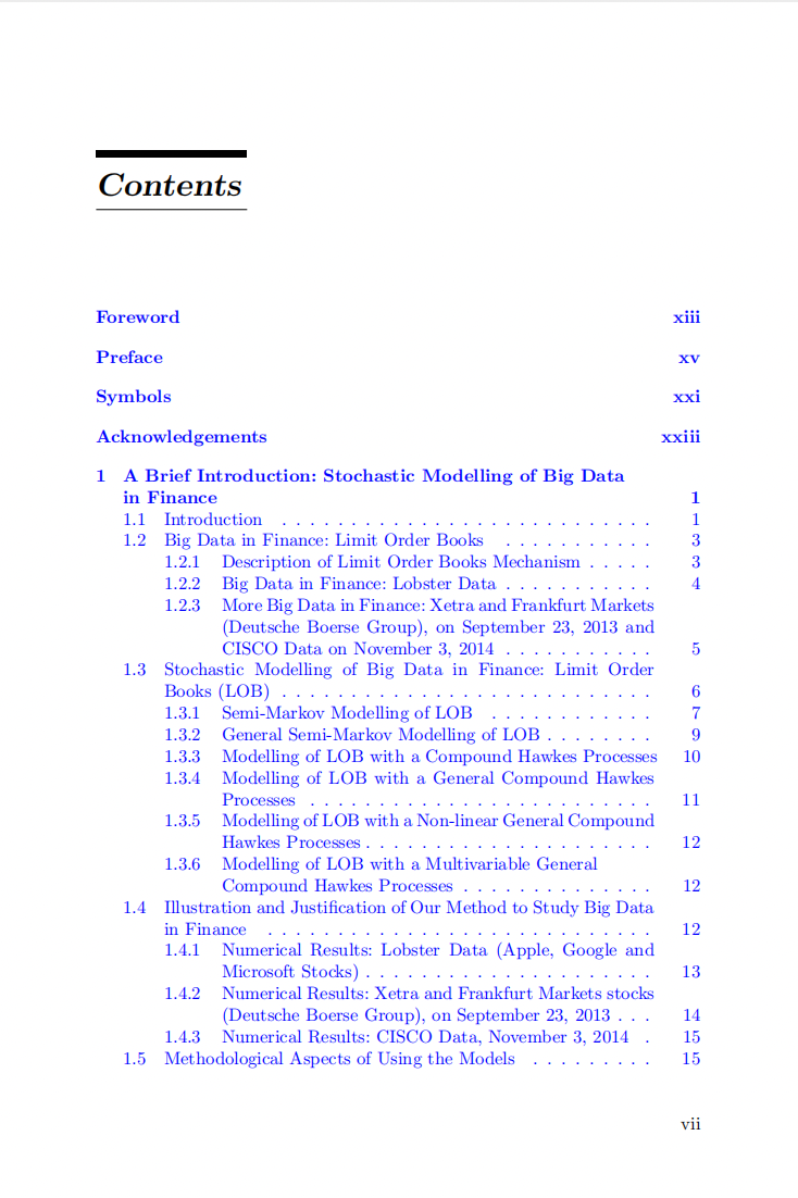 Stochastic Modelling of Big Data in Finance